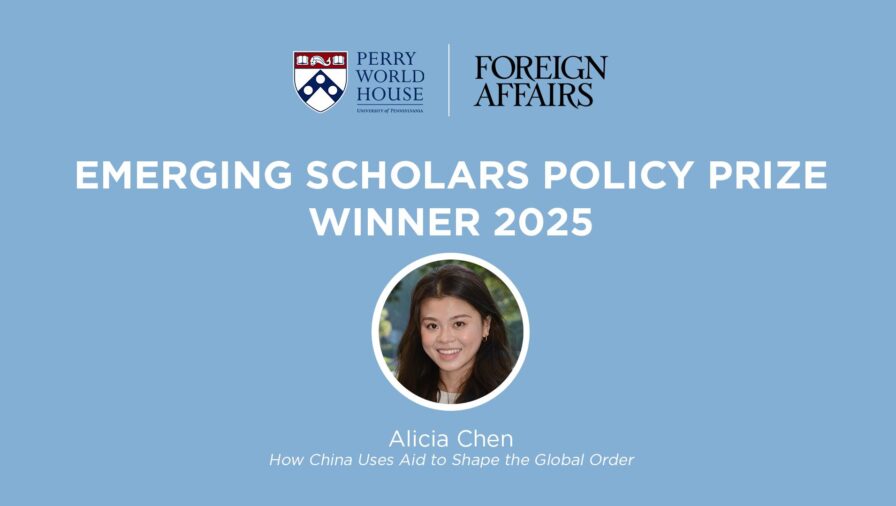 Perry World House (PWH) at the University of Pennsylvania and Foreign Affairs magazine are pleased to announce that the winner of the 2025 Emerging Scholars Policy Prize is Alicia Chen of Stanford University. Dr. Chen’s article, “How China Uses Aid to Shape the Global Order,” will be published in Foreign Affairs in the coming months.